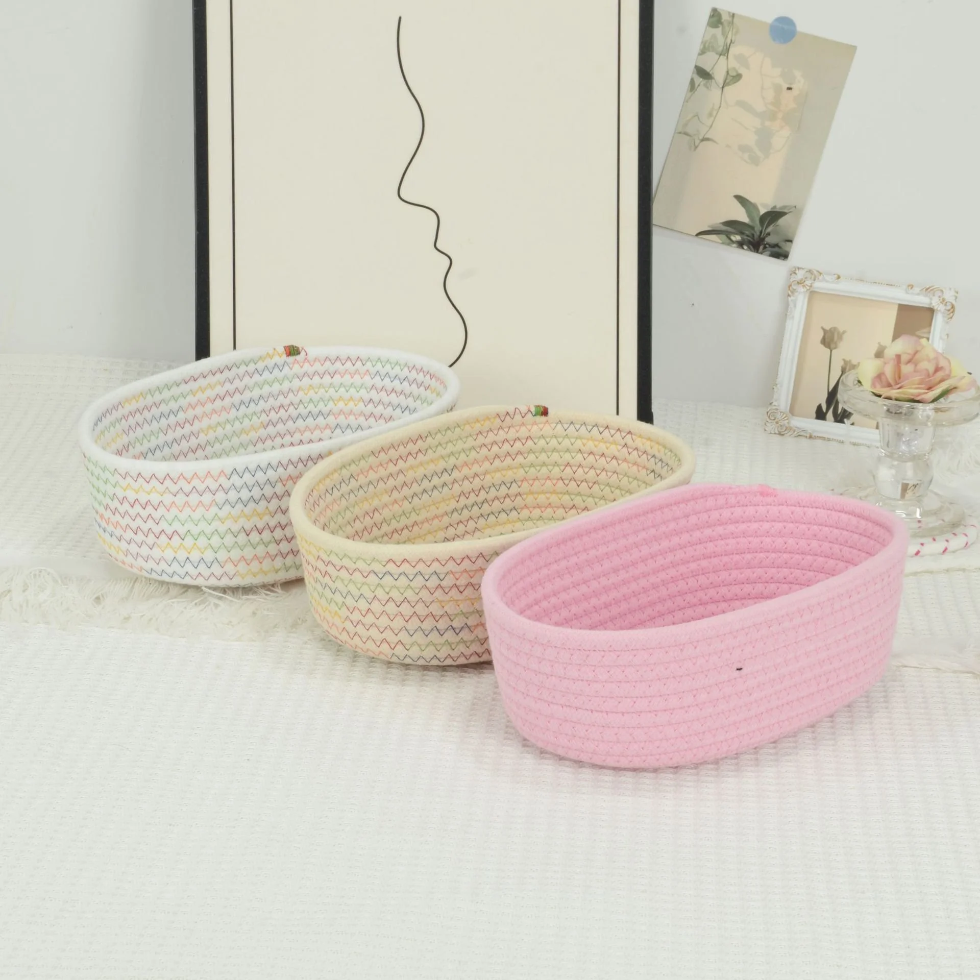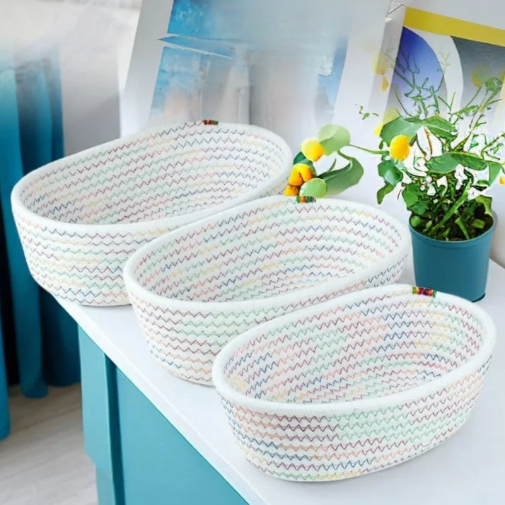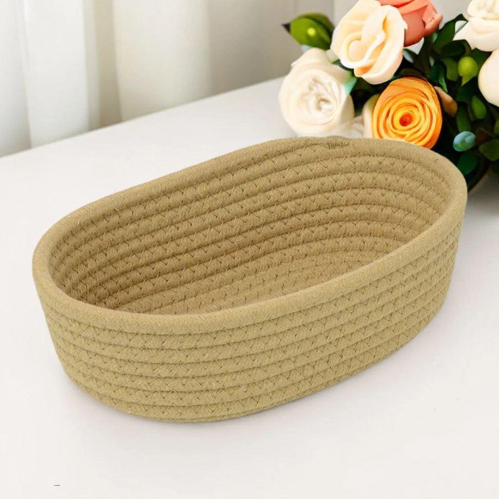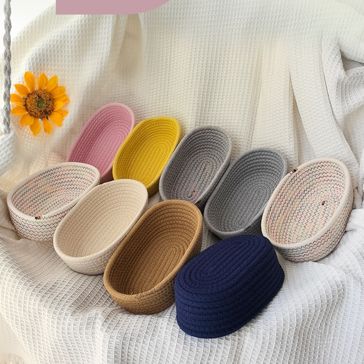 綿ロープ編み楕円形収納バスケット 家庭用お菓子・化粧品整理カゴ
