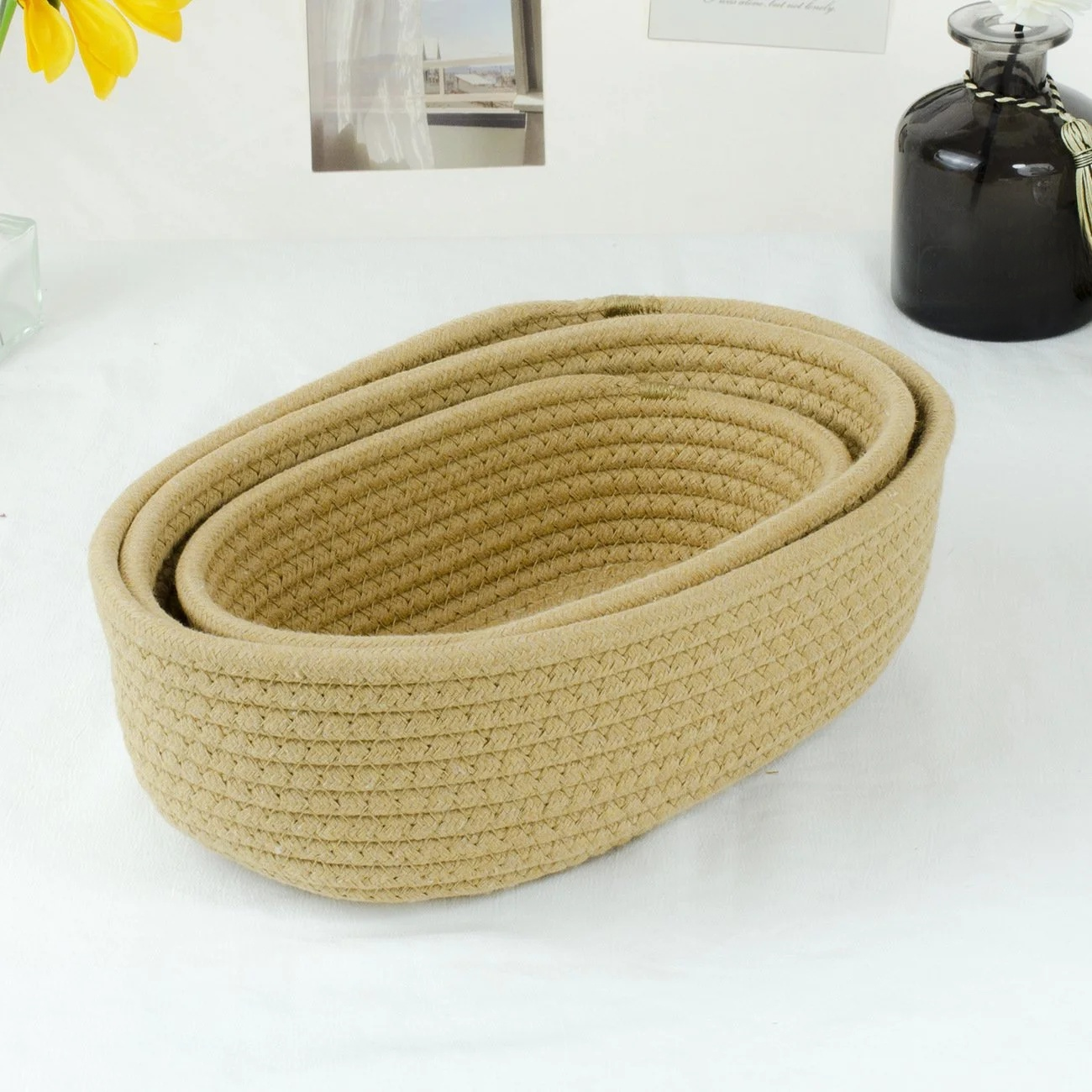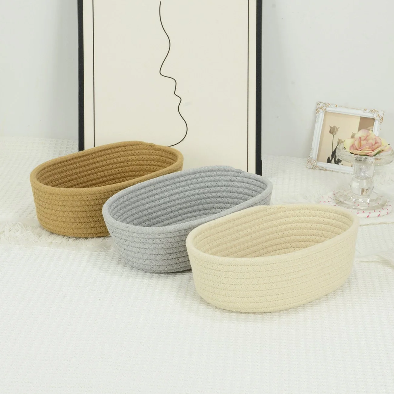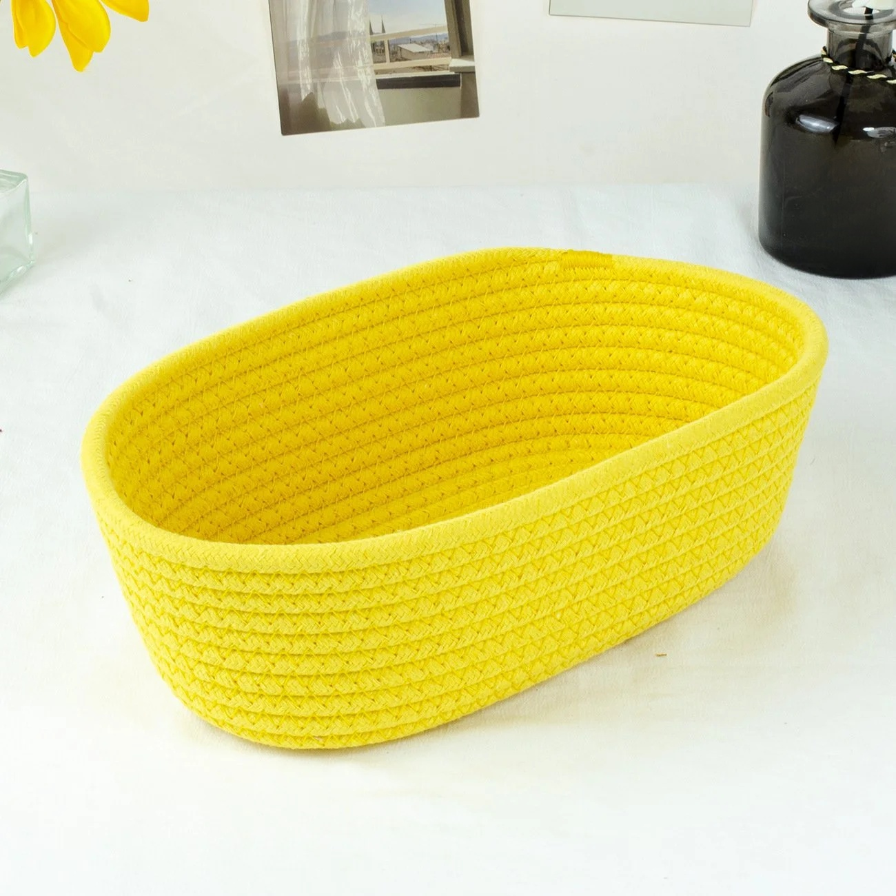綿ロープ編み楕円形収納バスケット 家庭用お菓子・化粧品整理カゴ