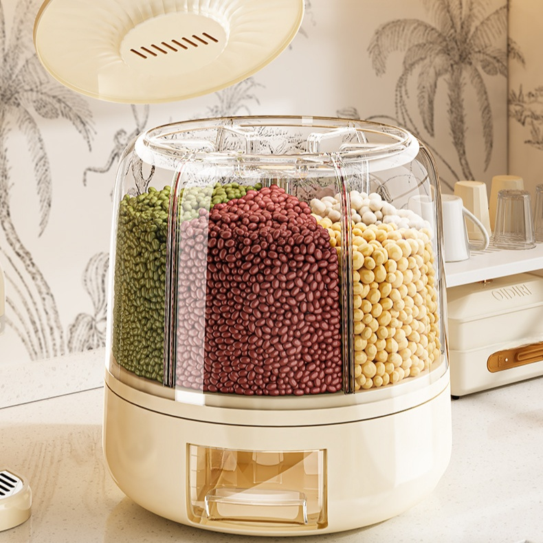 家庭用回転式プッシュ収納バケツ 五穀米密封保存容器
