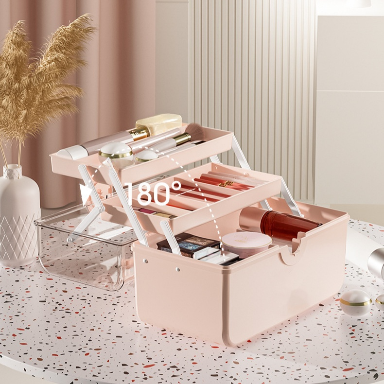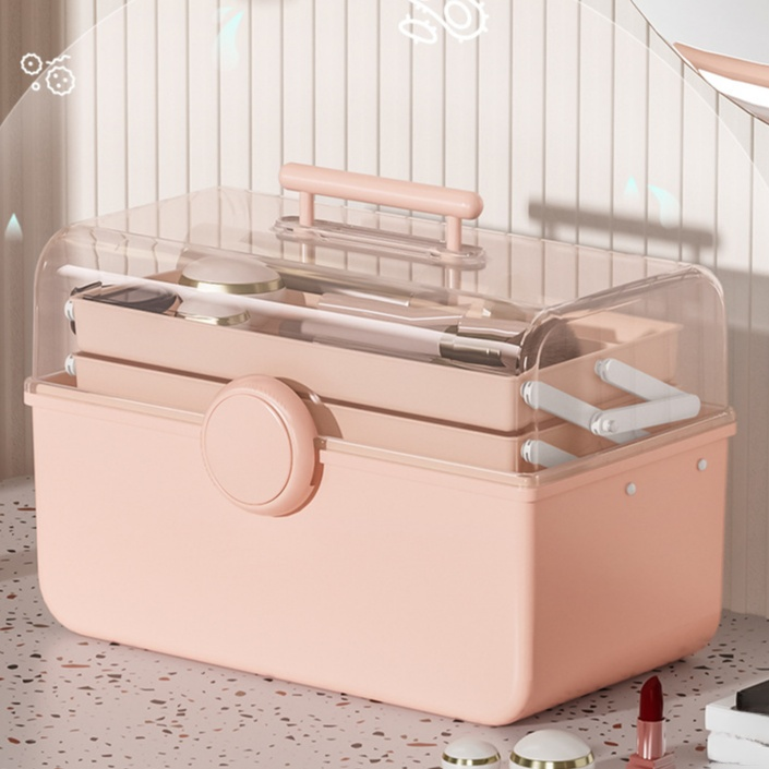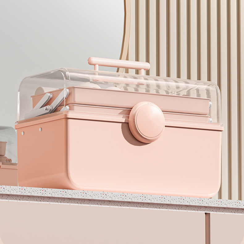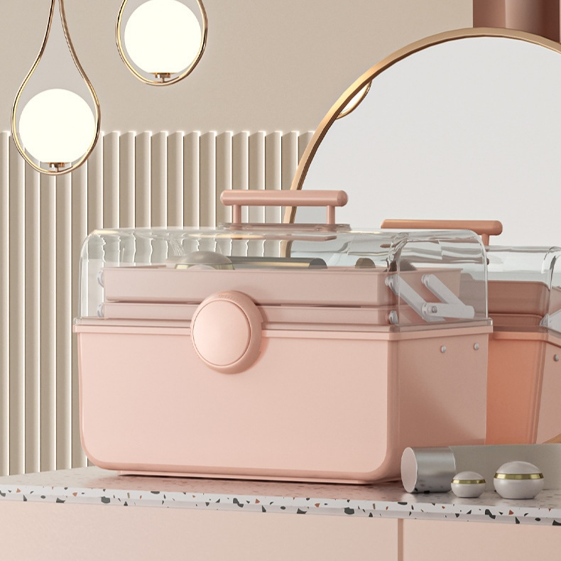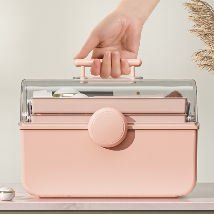 化粧品クリア手提げ収納ボックス 防塵・大容量 卓上収納ケース